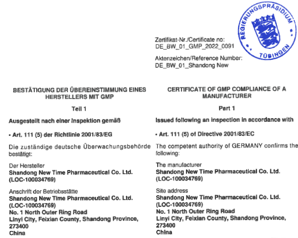 7月11日,鲁南制药集团山东新时代药业有限公司收到德国药监部门颁发的吸入液体制剂生产线欧盟GMP证书,标志着鲁南制药质量管理体系达到了欧盟GMP要求。这是自去年10月,鲁南制药通过美国FDA对口服固体制剂、无菌制剂、吸入液体制剂的现场检查后,公司制剂国际化战略上取得的又一里程碑式突破。